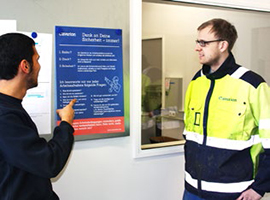 In Germany posters are put on display at all construction sites and properties, to make the employees aware of the potential dangers and risks in the workplace and to jog their memories regarding the questions they need to ask themselves. These posters get people thinking - and potentially prevent an accident here and there thanks to people changing how they act.
