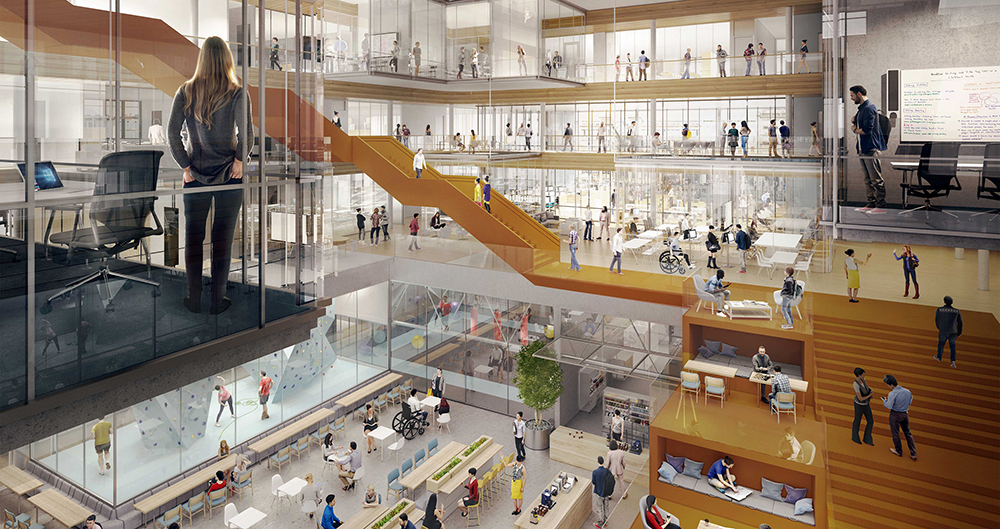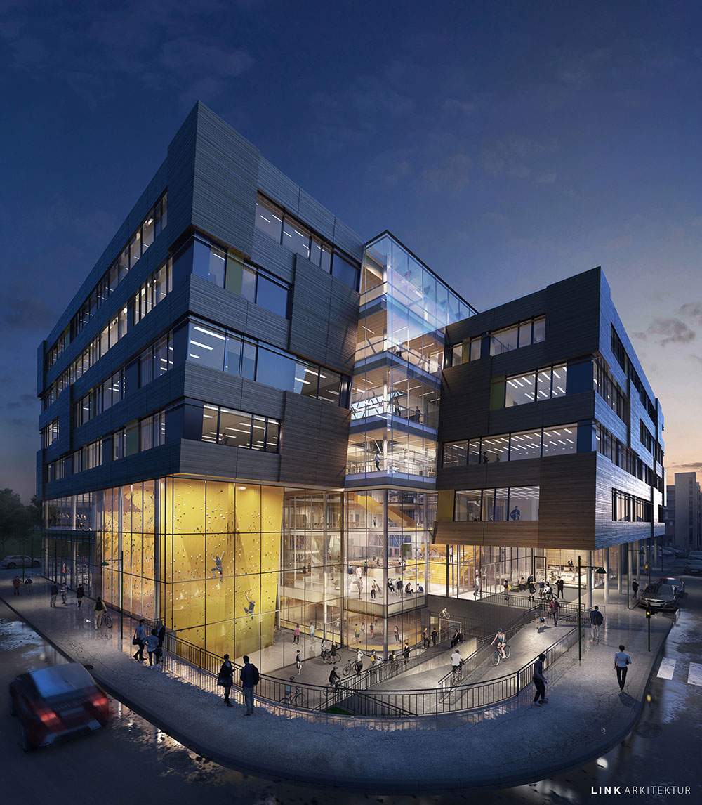 With 18,000 m2 the building will be a combined education and sports venue that will contain a mix of teaching facilities, social meeting places, and exercise opportunities for 2,000 students and 250 employees.