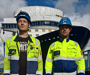 The scheduled maintenances of cruise ships are done on shipyards and our technicians work long hours in crammed and hot environments inside the rudder propellers. “The ships have a propeller system that functions as both the rudder and the propeller, and the system turns 360°. We do electrical dismantling and reinstallation in connection with bearing maintenance and seal renewals,” technicians Pekka Järvinen and Jere Aaltonen explain.