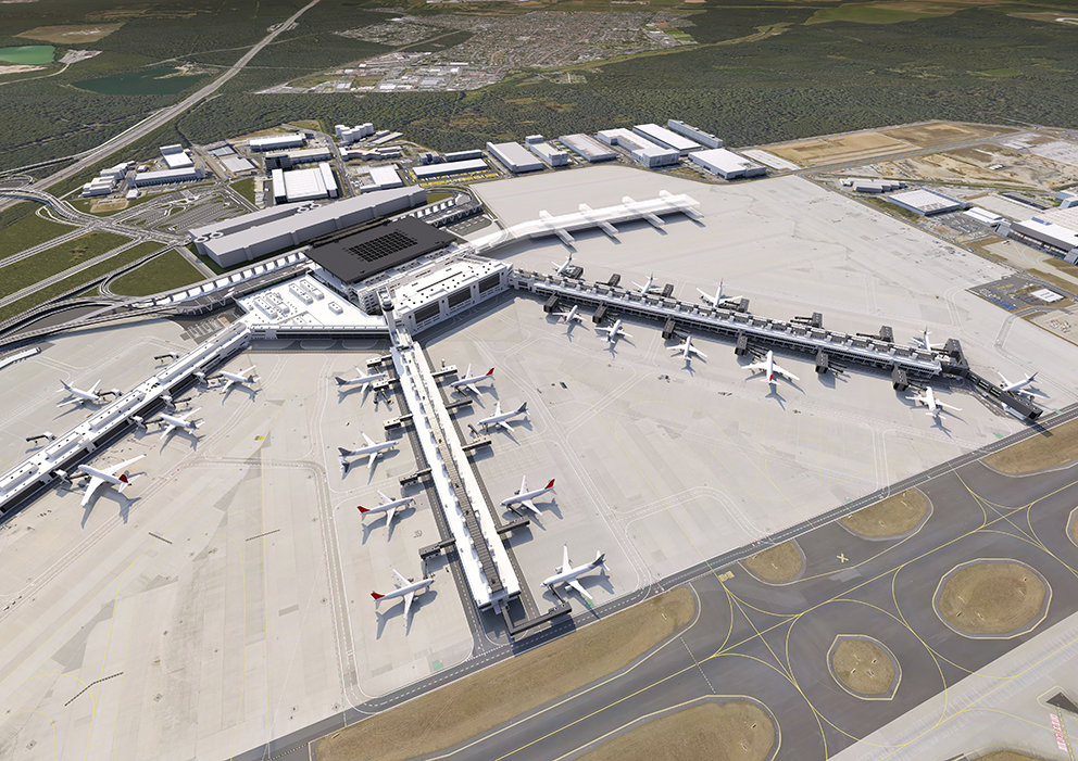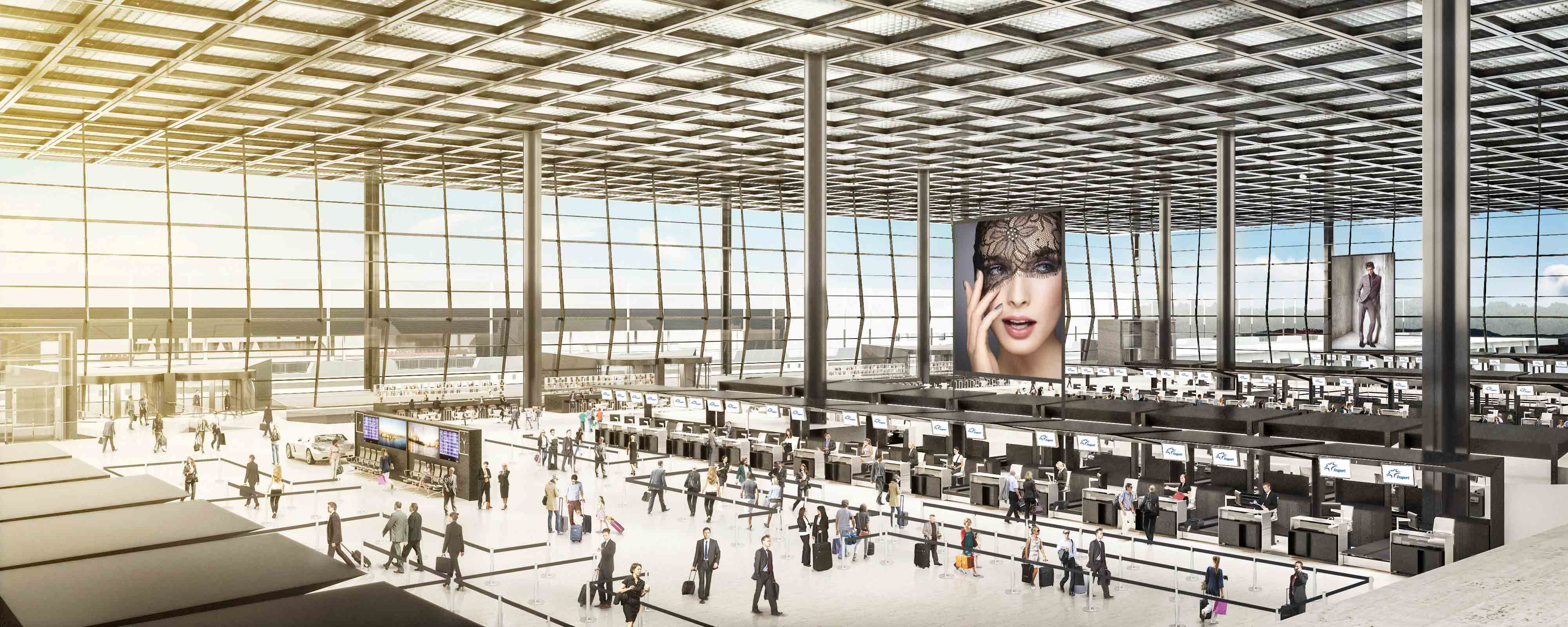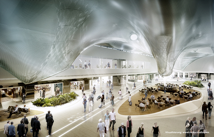 The entire Terminal 3 will include 300,000 square meters of gross floor area for passenger handling, lounge areas, catering and office space. According to current plans, up to 21 million passengers per year can depart from or arrive at the new airport area after completion of Terminal 3 in 2023. In terms of sustainability, the new terminal sets standards: thanks to its efficient design and modern technology, it hardly needs any heating energy. The process heat will be used for the heating of the building.