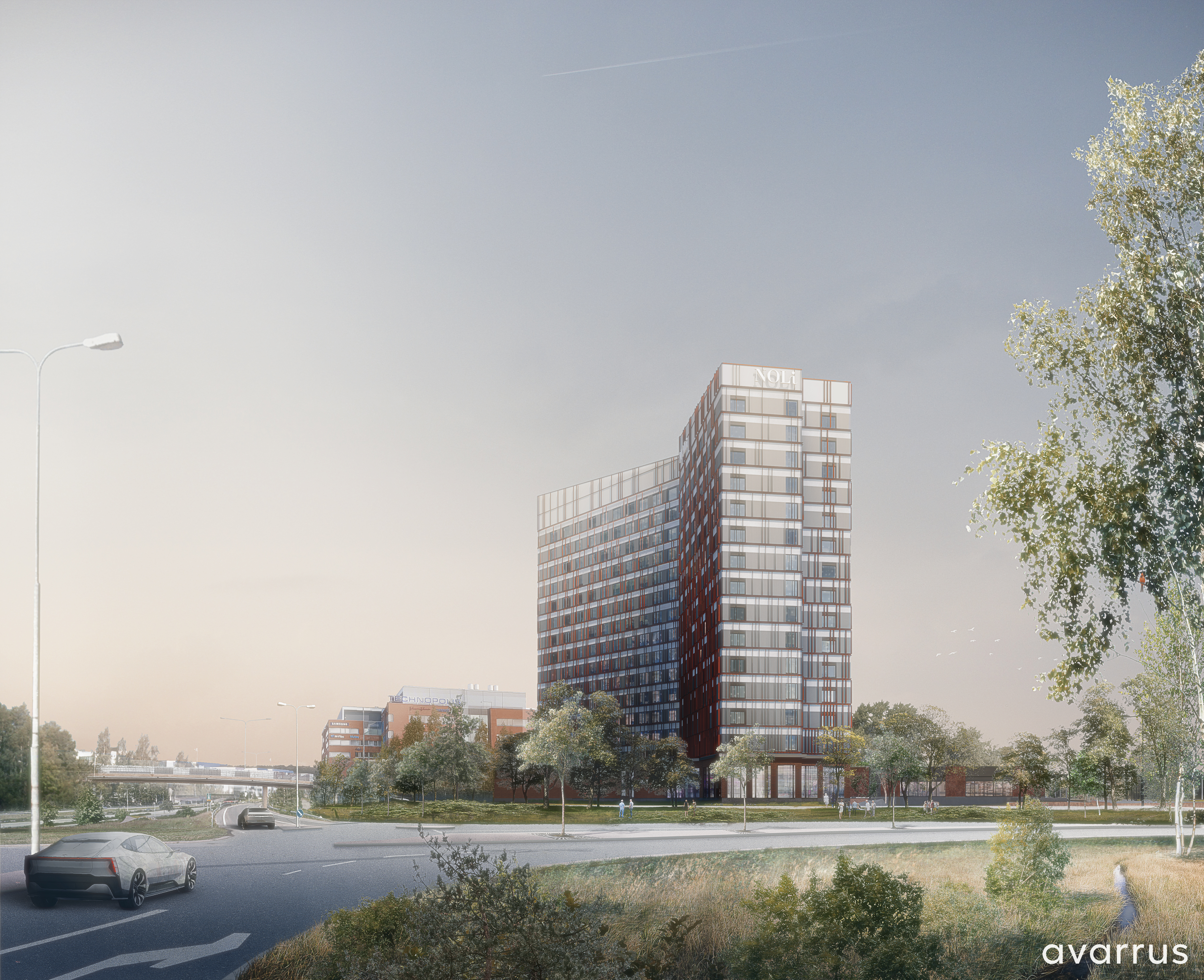The 15-storey building of Noli Studios Otaniemi will include more than 400 studios. A grocery shop will also be built on the plot. All in all, the buildings will cover a total of about 17,000 m2. Construction company Peab will be in charge of the construction project.