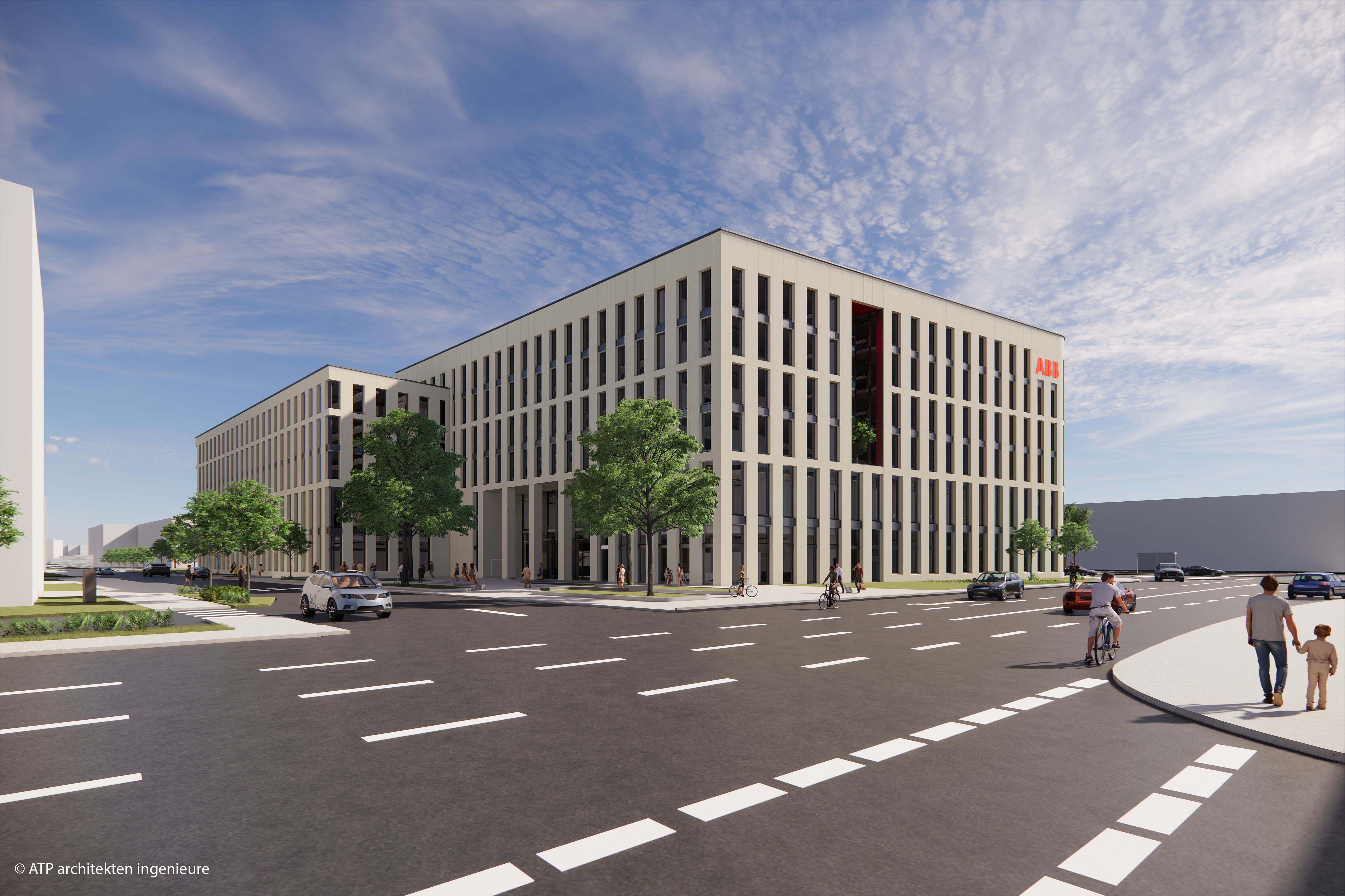 The innovation center for digitalisation and artificial intelligence named "ABB Campus” contains a data center, a research center with laboratories and more. The five-story building, where more than 1,300 employees will find their workplace, has a gross floor area of around 30,000 square meters.
