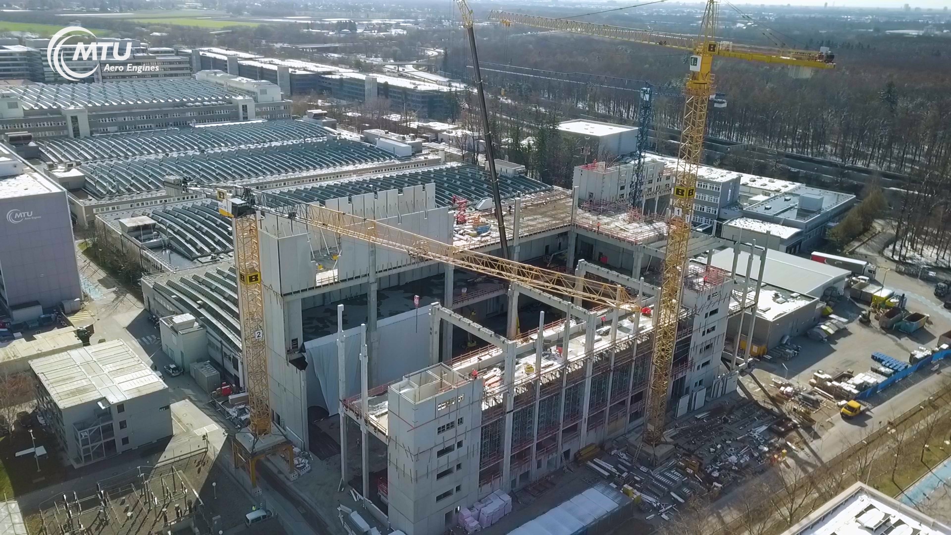MTU Aero Engines is a leading manufacturer of military and commercial engines. At the company's headquarters in Munich, a new production building for rotors, including an office wing, is being built on an area of 14,200 square meters.